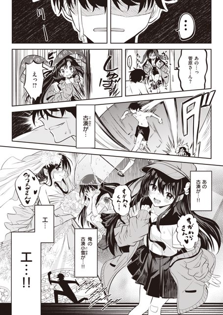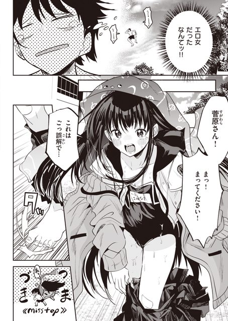 小雪裙子都還沒穿好就持續追上去,但也因此摔倒撲在菅原身上............