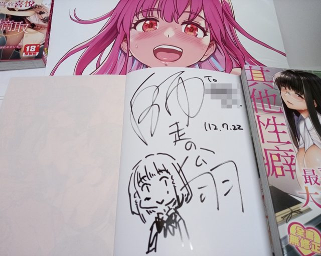 之後便是依序拿單行本排隊請老師簽名的流程,老師們除了簽名外還有簡單繪製小插圖,