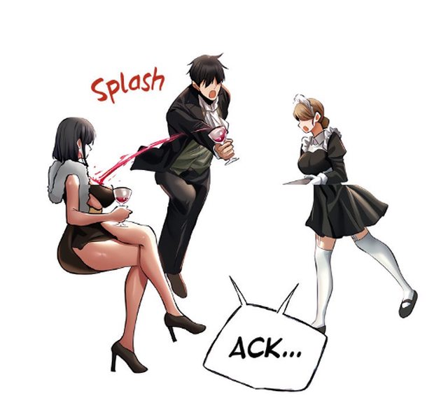 原本還在偷偷觀察 結果女僕把酒弄倒