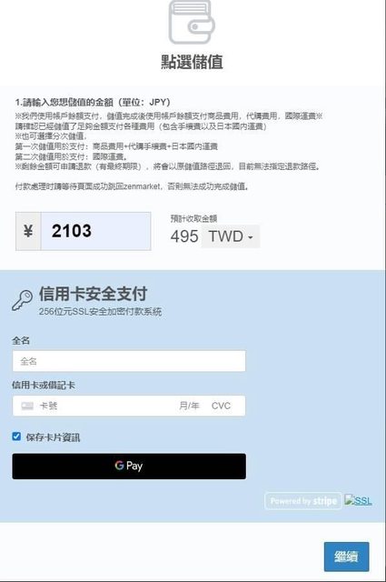 : 使用信用卡2103日圓轉換台幣495元