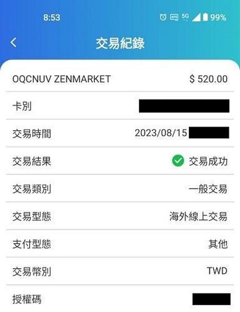 : 原本信用卡會有3.5%的手續費...自己算一下應該是512.3元左右才對