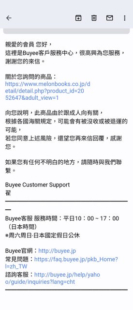 前幾天在代購網Buyee客服寄信問問題 回覆了