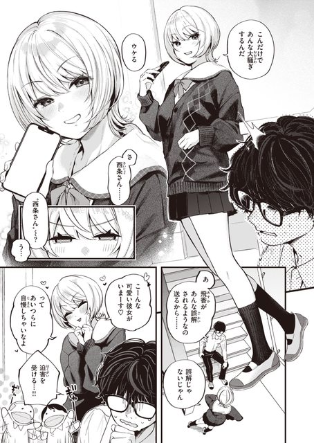 承受不了的彰吾逃離教室,此時有位女同學笑著看著事件發展