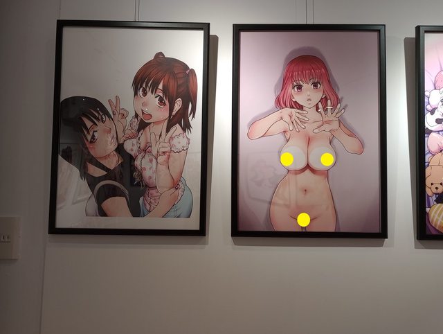 除了純展覽外,現場也有一些2位老師的商品販售,有同人誌、飛機杯、啊嘿顏T恤...等