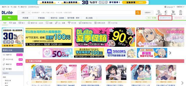 首先,來到DLsite的主頁,點選右上角的男性向R18