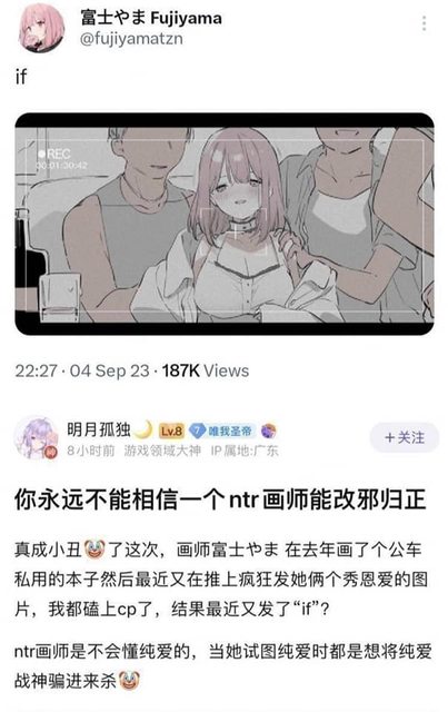 → mangoldfish: 說NTR是邪,看來是沒見過真的邪 09/25 17:39