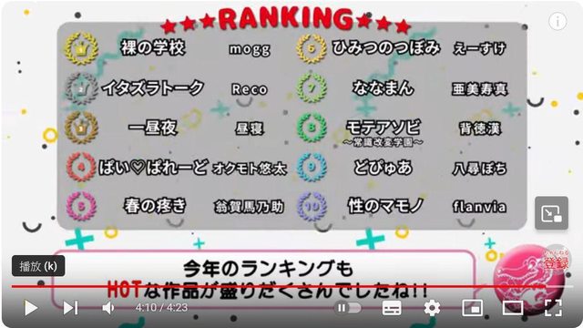 PS:配合這次榜單,前兩年進榜的作品有做5折促銷(FANZA/DLsite)