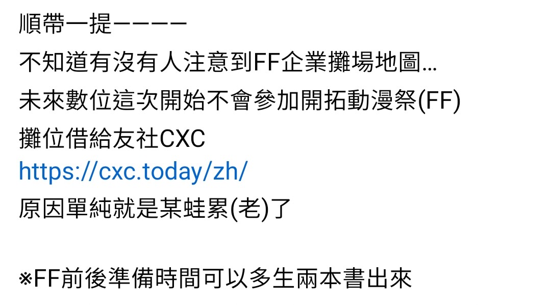 → NTUBeavis: 也連續兩次沒參展了,有人知道原因嗎? 02/19 20:55