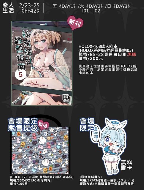 FF42社團:廢人生活/[五][六][日]三日攤位皆在I01,I02