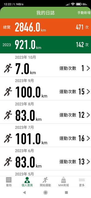 8.雖然跑得不快,但很喜歡慢跑,月跑量約100km。