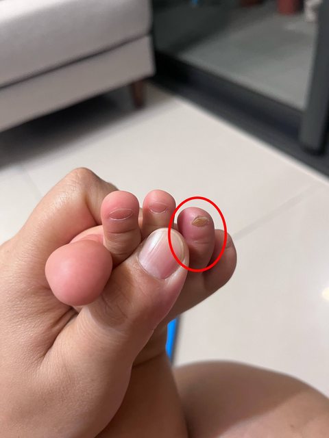 發現寶寶的腳趾疑似掀起