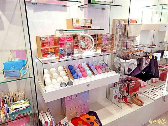 生理用品博物館展示各國生理用品,包括月亮杯、生理褲等。(記者賴筱桐攝)