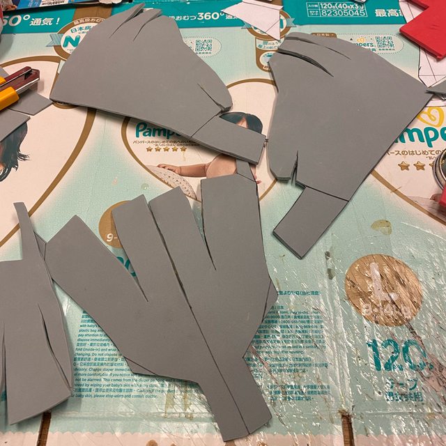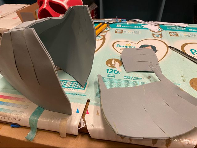 這樣黏在一起的時候形狀能更漂亮,這也是EVA泡綿比紙箱更方便的地方。