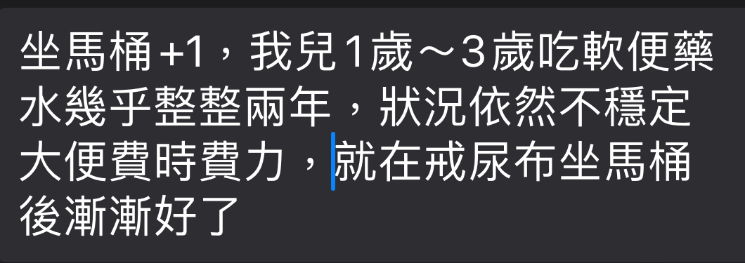 → collecting5 : 自然會改善。在訓練坐小馬桶之前就是靠腹樂疏讓小朋 11/24 23:22