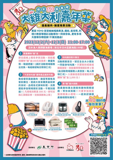 精彩60國產雞 大雞大利嘉年華 國產雞肉雞蛋推廣活動,連續2天有吃有玩有抽獎!!!