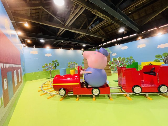 都超級開心地,在這裡,可以和佩佩一家一起坐車、搭熱氣球呢!