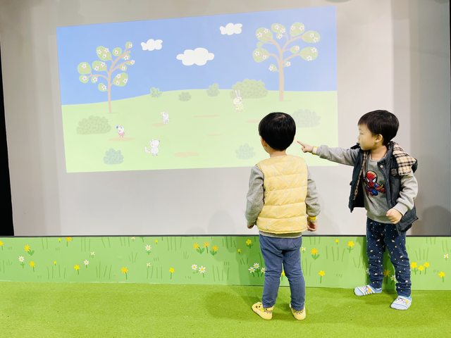的圖畫紙交給工作人員,他們會幫忙掃描,寶貝們畫的圖畫,就投影到大螢幕上了喔~