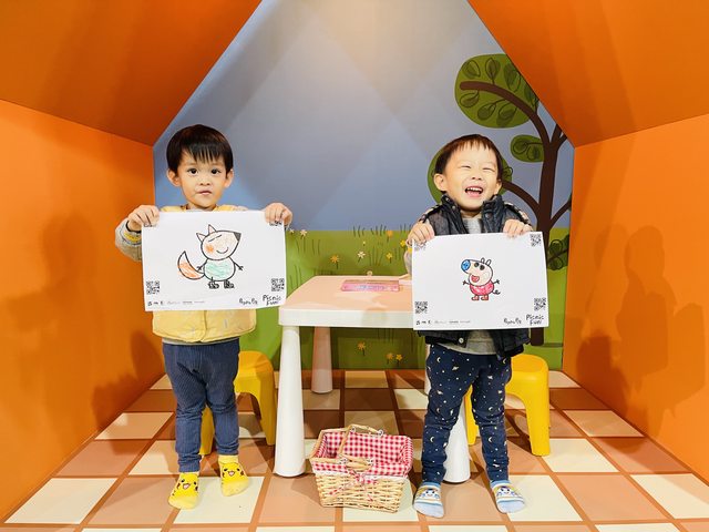 互動區,還蠻有趣的,兩隻總共畫了兩次呢!先選擇要畫佩佩、喬治還是狐狸,然後工作