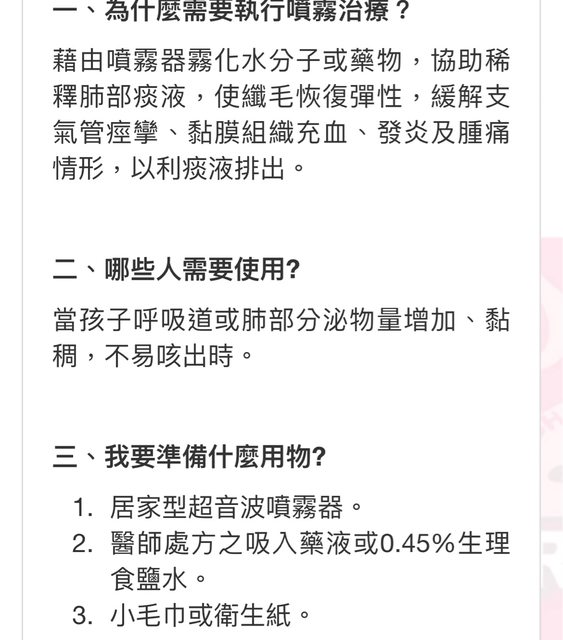 0.45%食鹽水做霧化治療的部分,幾乎都只有在台灣的衛教單張能看的到,