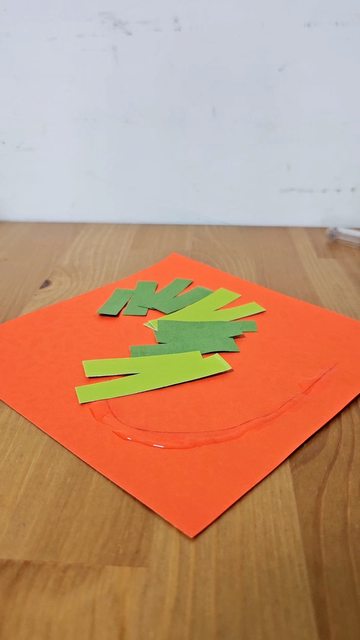 綠色長條型紙片、膠水、小正方形片