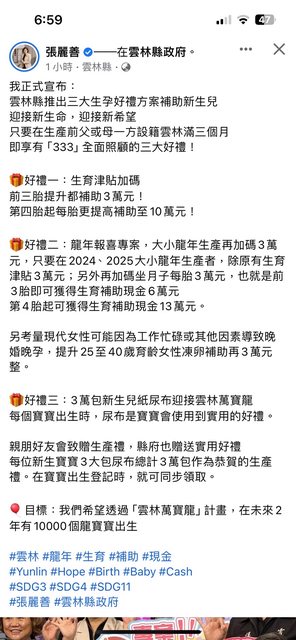 推 bullma : 小女1/4出生;1/8報雲林戶口,確實收到6萬+3袋尿布 01/11 22:54
