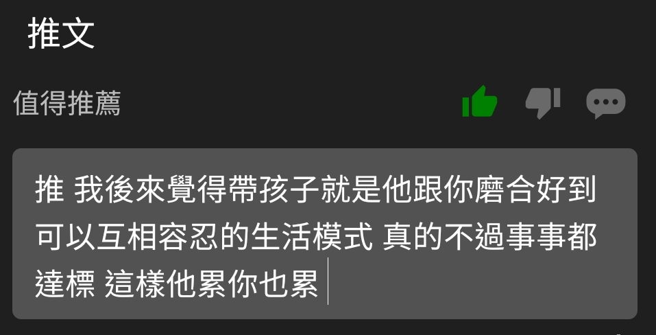 推 katiemeow : 推,有小孩後事情很多,真的不要再跟自己過不去, 01/29 17:15