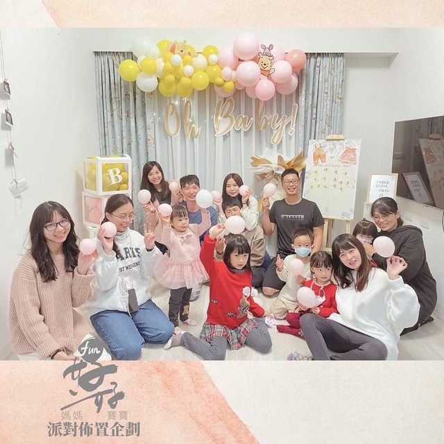 這次很喜歡好好FUN派對幫忙布置的黃色與粉色氣球,參雜小熊維尼增添溫馨感,而周邊