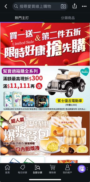 yahoo愛買箱購幫寶適全系列滿$2999折$300