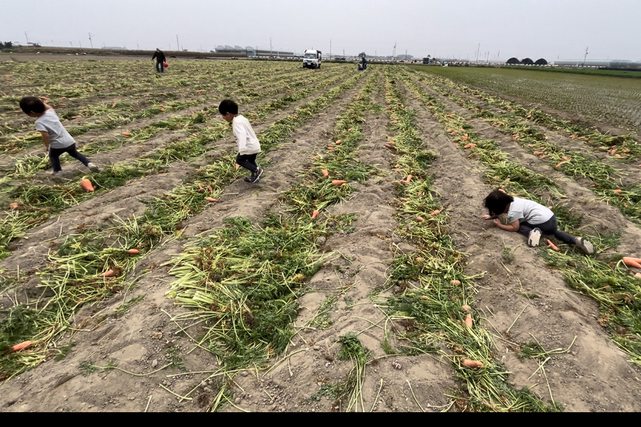 陽玩土,所以就是早上出去曬太陽玩,然後最近比較好玩是因為,附近有紅蘿蔔再收成,