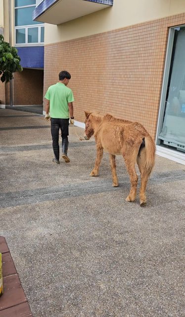 飯店人員就牽著馬跑出來