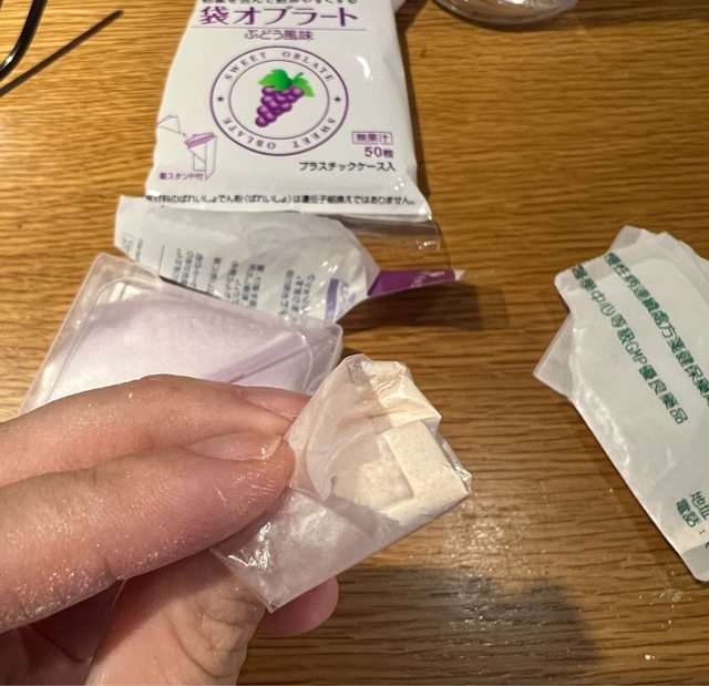 → akiraonlyone: 的狀態直接放嘴裡吞下去,是要泡水讓它濕掉不會黏在03/23 22:36