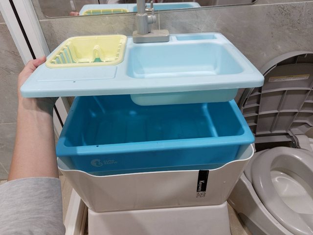 (淺藍為洗手槽、深藍為淨水盒、白色為污水盒)