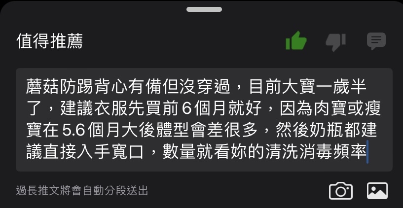 推 shiningwine : 另外奶瓶不要買不一樣的,因為有的小孩會挑有的不會04/16 10:46
