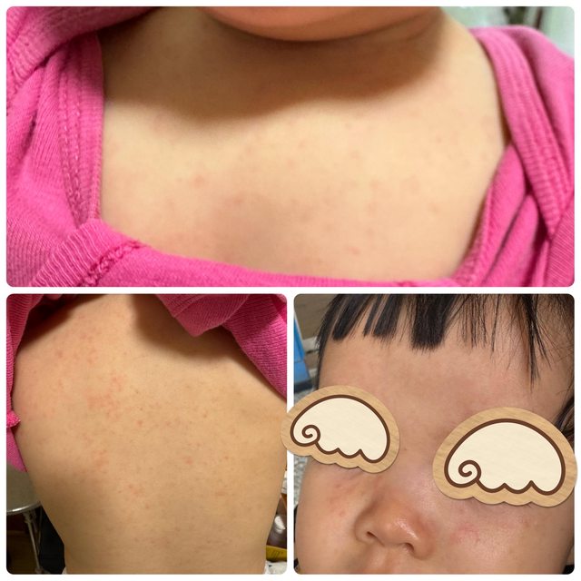 *有在眼睛下方(大人稱眼袋處)及脖子後方發現小紅點