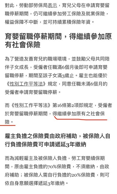 → doghost111 : 要「續保」才能請領育嬰留停津貼 06/06 09:55
