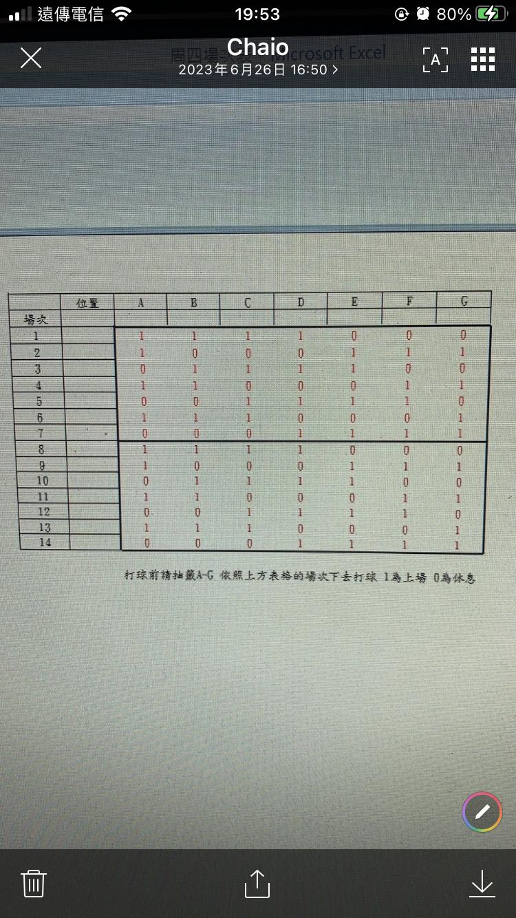 → Luckypenguin: 7人就1234先上場打 567補上一場的一位 輪流補打7輪 07/07 22:11