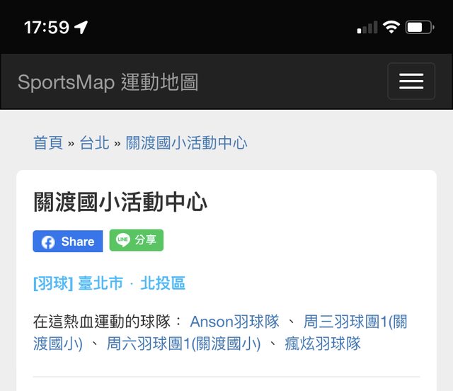 推 atgmtlc : 臉書社團*大台北羽球同好交流版*有關渡國小週六晚上 07/11 20:10