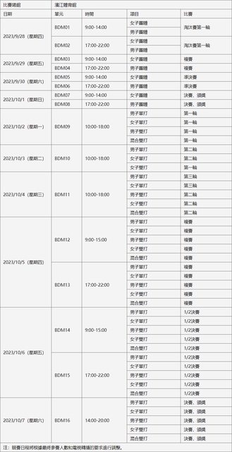 推 xam3000f : 羽球比賽 團:28~1(4天) 個人 2~7(6天) 09/22 10:50