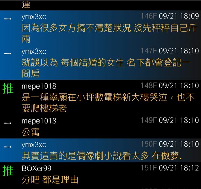 → demitri : 這種怨氣 讓他們在婚前會想更佔男生便宜 09/17 00:08