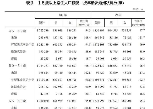 → Colitas : 扣除50,未婚男女比會變成57:50,依次類推,已婚比 10/14 10:41
