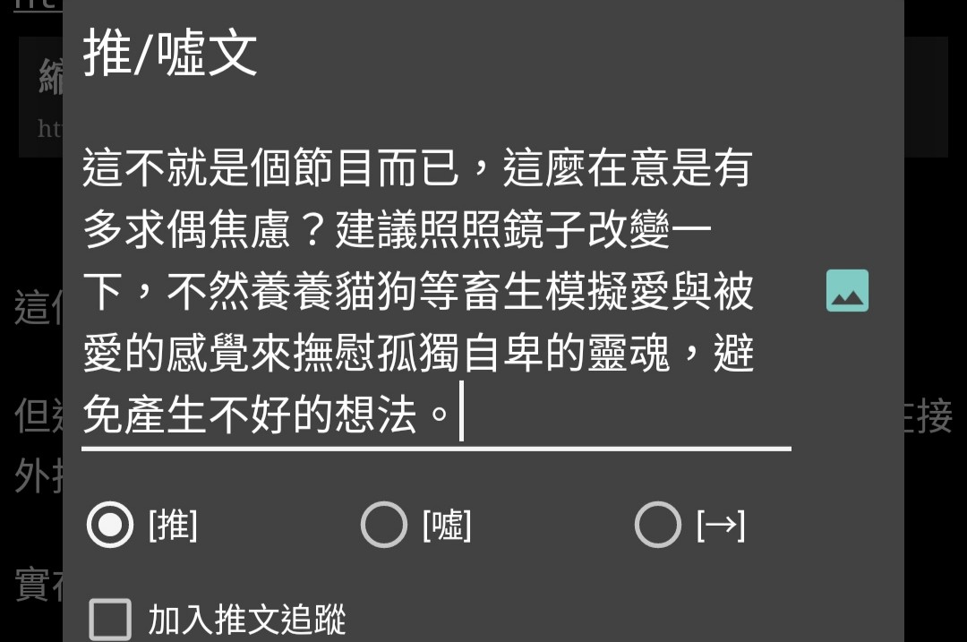 推 poopaapoo : 其實...不是結婚還上節目徵友應該還好吧XD 10/25 16:44