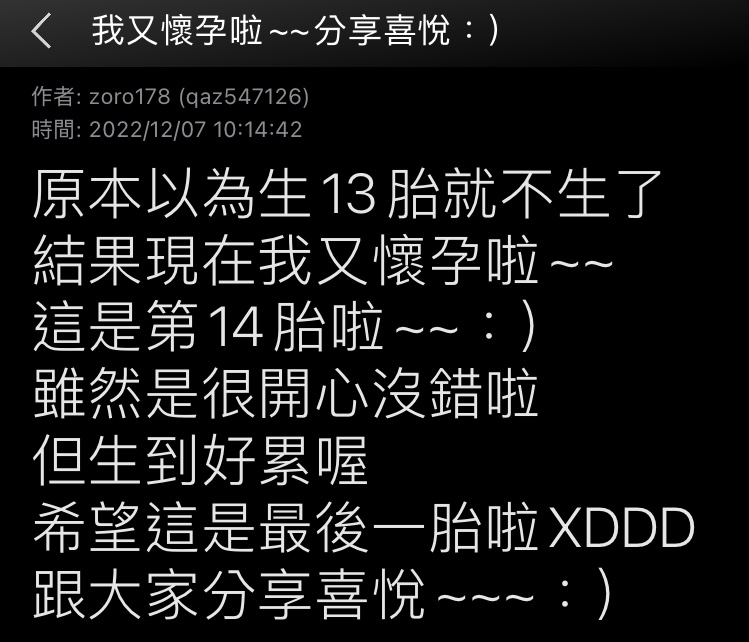 噓 abby99 : 你上一篇懷孕說是第16個小孩,現在怎麼會是第14個 11/16 14:29