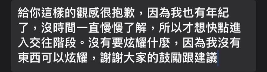 推 annieyee : 雖說有年紀的話時間很寶貴沒錯,畢竟是想共度一生 12/11 10:13