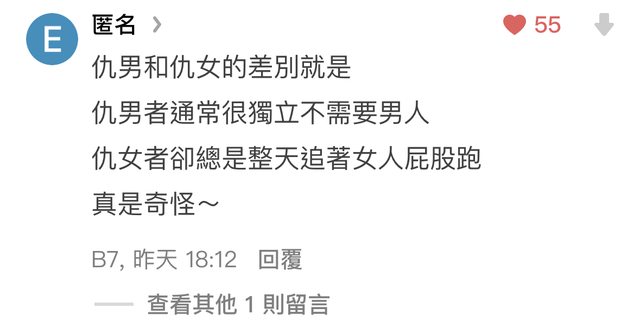 → fly10847 : 仇女是父權社會遺毒,那仇男呢? 12/09 12:39