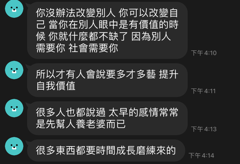 → shine32025 : 以前每天聊三四通 突然沒人聊很空虛 02/27 19:30
