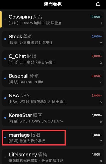 → yueayase : 實際上她們也不希望婚姻版上前幾名熱門看板,因為這 04/16 16:21