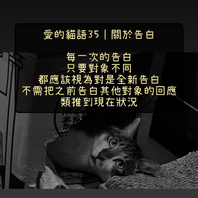 「愛的貓語」是根據心理師近30年的觀察、實務經驗及愛情心理學的研究成果,發展而成的短文,我認為,如果能從01貓語,細細思量貓語,有這個認知及行為,往向順利和諧的戀人乃至於可能未來婚姻之幸福不遠矣!