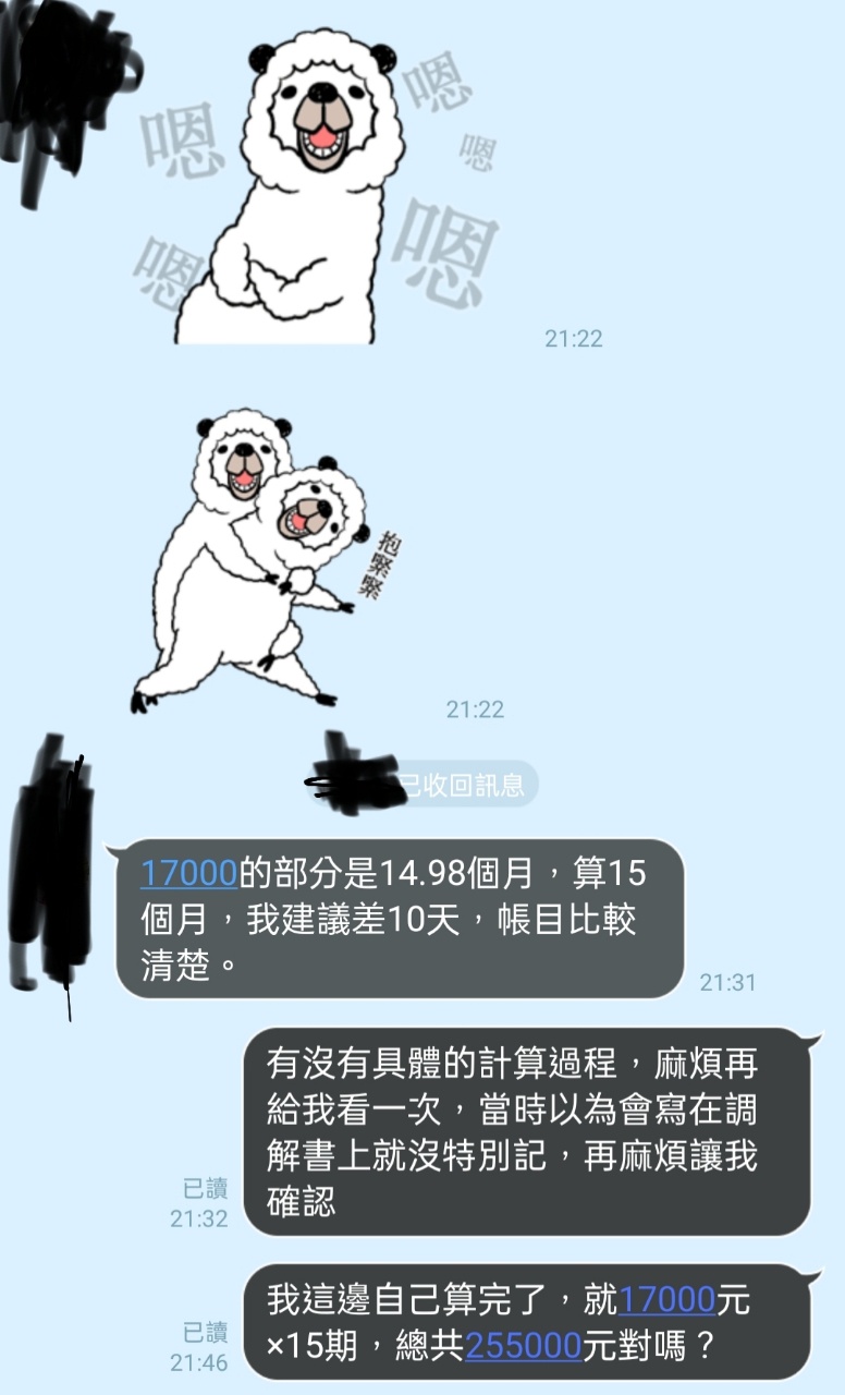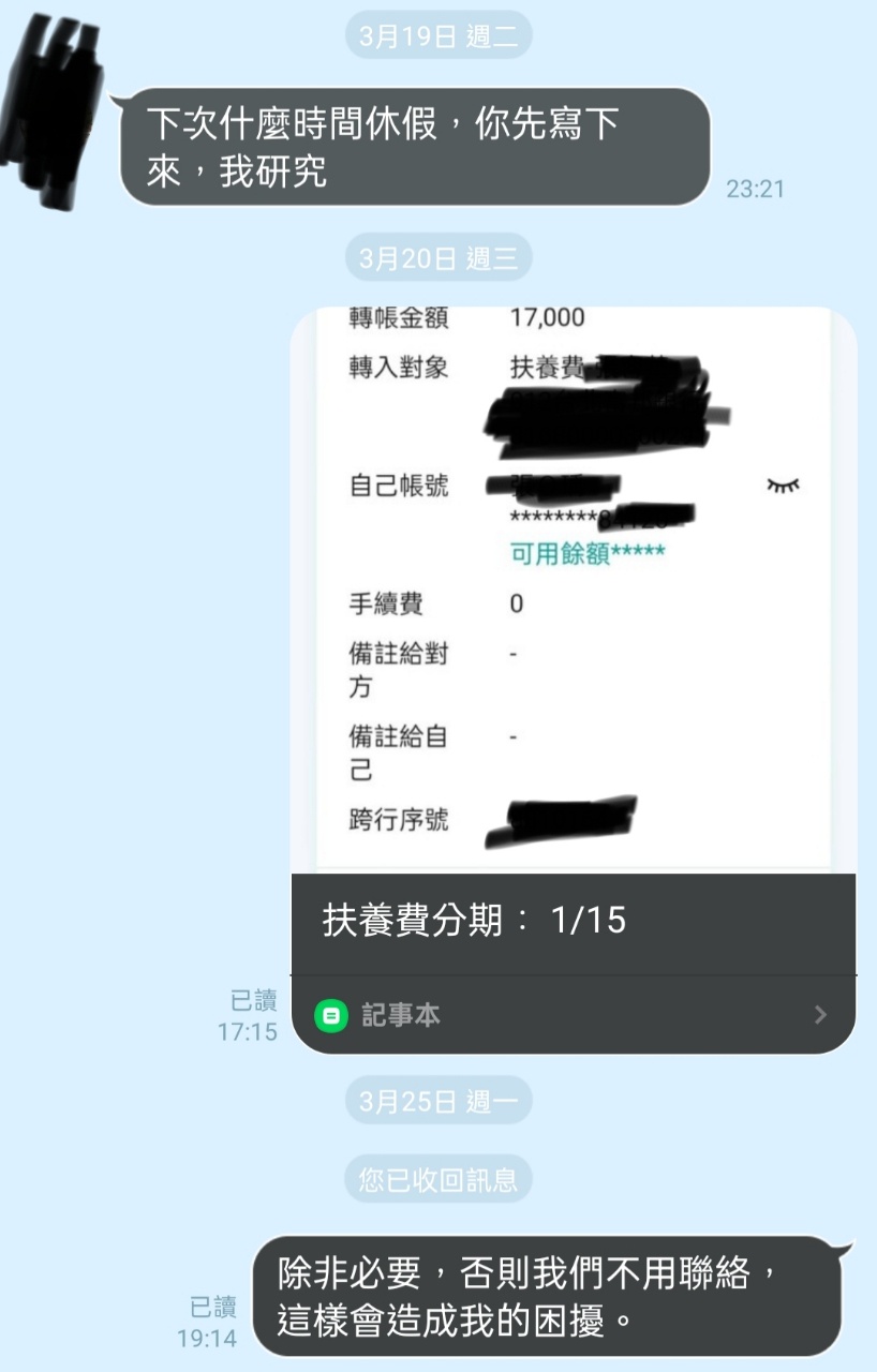 推 yarm13645 : 貼出前妻跟自己的對話,醫生一個月給17000贍養費? 07/24 09:42