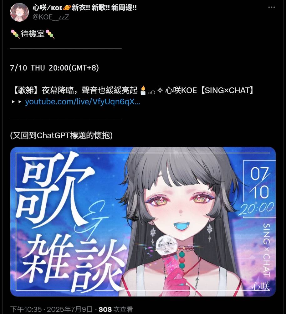 【歌雑】夜幕降臨,聲音也緩緩亮起 心咲KOE【SING×CHAT】