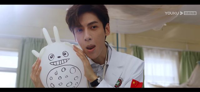 顧云崢對身患絕症的小男孩薩坤充滿耐心,不只畫了龍貓氣球逗他還鼓勵他雖然現在沒有